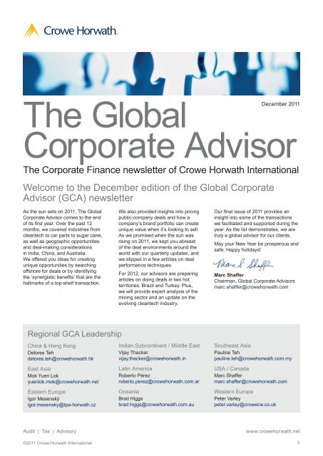 The Global Corporate Advisor Crowe Horwath International - Services are provided by the member firms.
