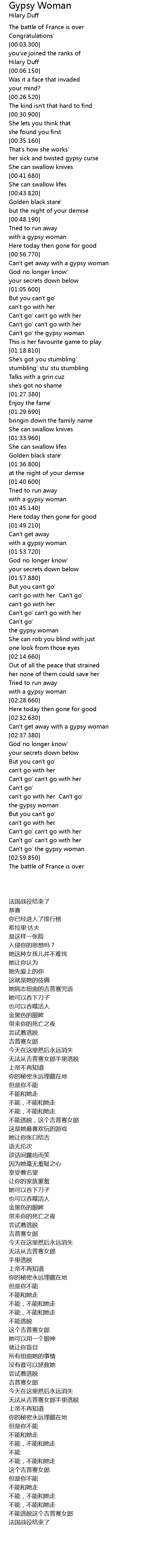 Gypsy Woman Lyrics Follow Lyrics - Fame > demise lyrics performed by woe, is me: