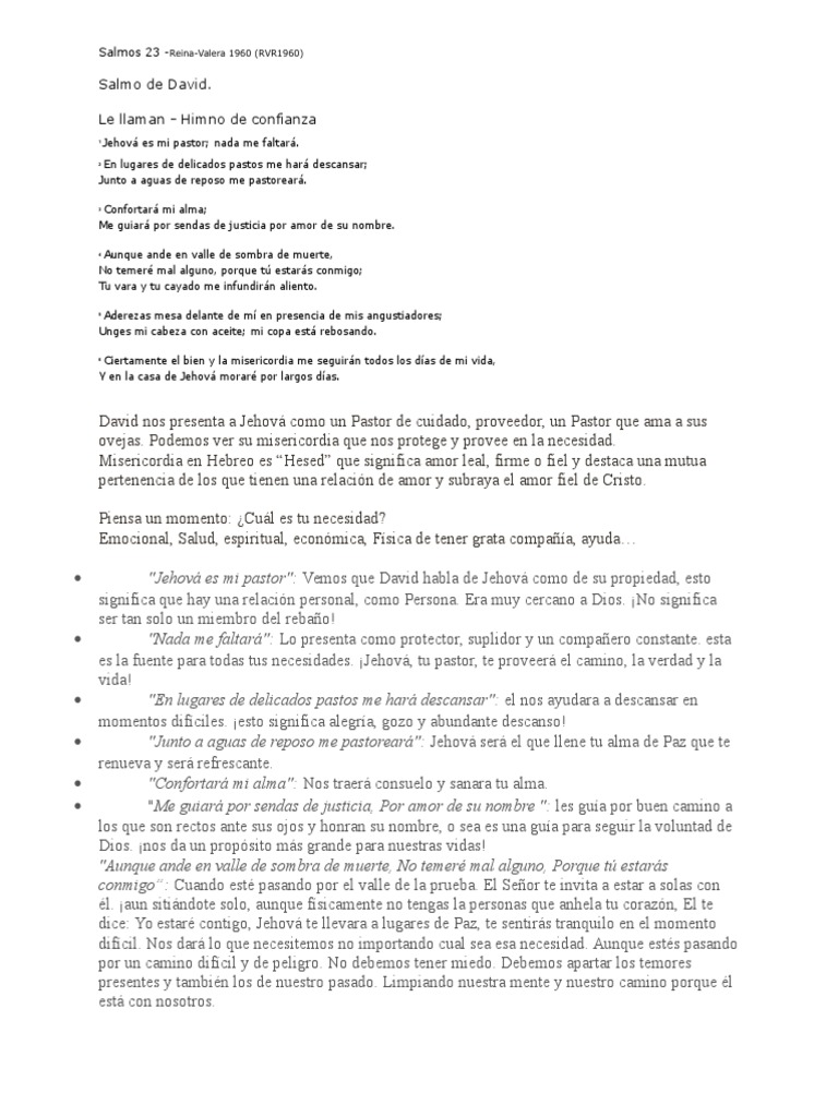 Salmo 23 Reina Valera 1960 / Un salmo que nos anima y llena de esperanza. Salmo 23 Reina Valera 1960 : El salmo combina dos tipos de formas de salmodicas: