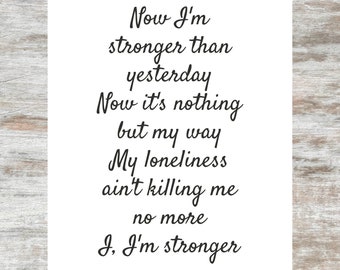 Britney Lyrics Etsy - Stronger than yesterday now it's nothing but my way my loneliness aint killing me no more i'm, i'm stronger.
